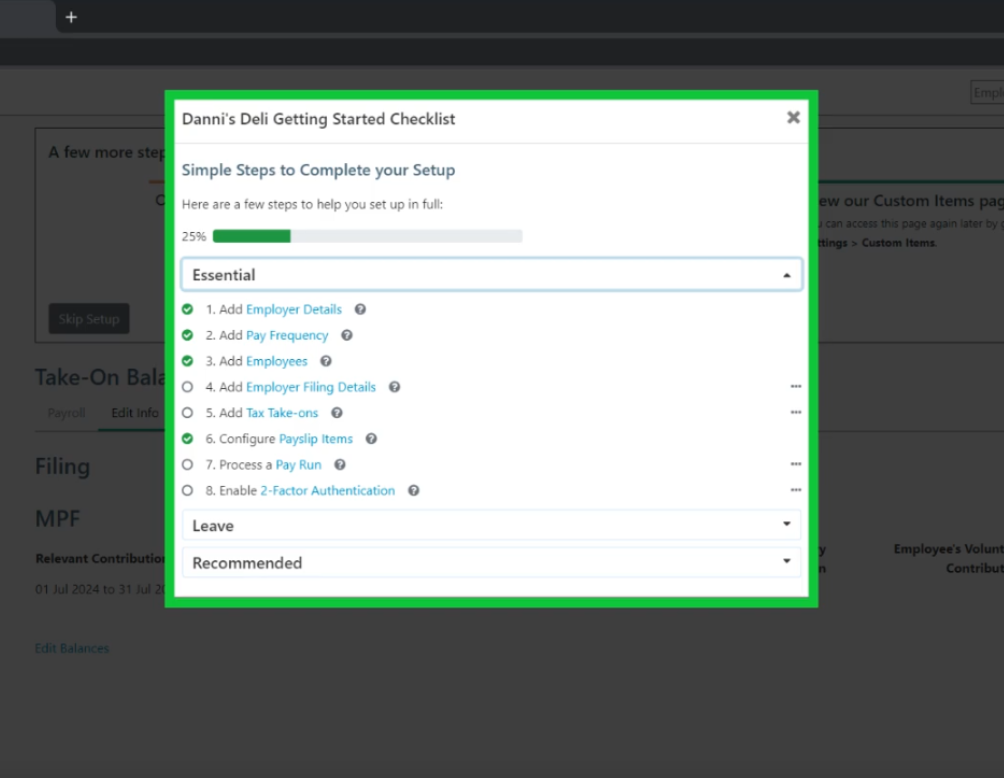 But don’t worry – the Getting Started Checklist is here to guide you through everything, step by step. It’s organised to help you distinguish between what’s essential, optional, and recommended. This way, you can prioritise tasks and get your payroll up and running smoothly from day one.